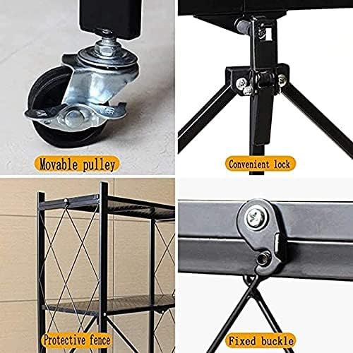 Metal Foldable Mobile Storage Shelving Unit, Rolling Utility Cart Storage Shelf Rack for Home Office Kitchen Bathroom