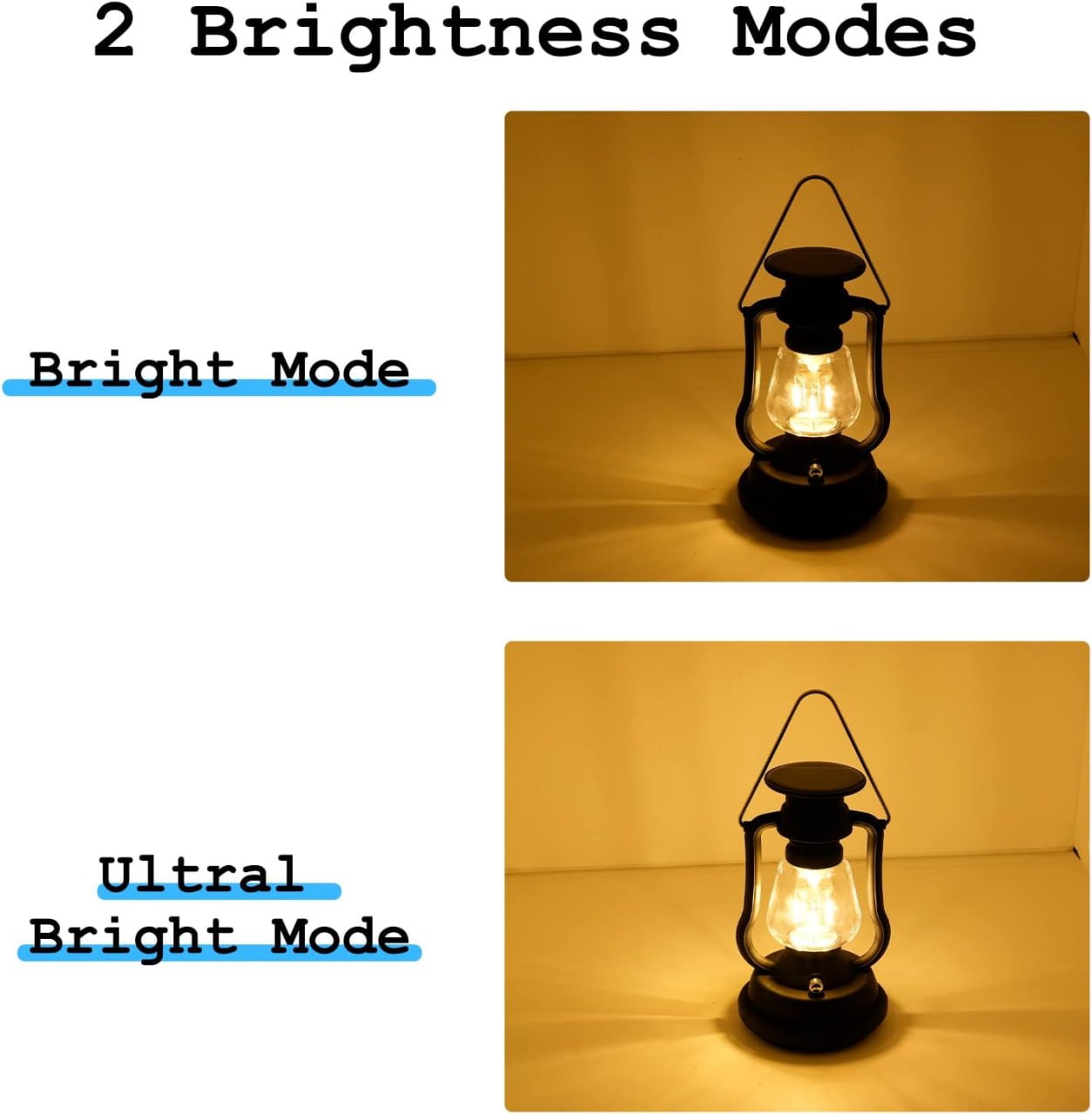 Ultra-high Brightness Solar Lantern: The solar camping lights adopts 3 high-quality tungsten filament lamps, the light color is warm yellow, providing 200 lumens of light source, The brightness is greater than that of ordinary light bulbs, which can meet the lighting range of a larger area and provide you with an ultra-bright environment, and it can be continuously illuminated for about 5 hours when fully charged.